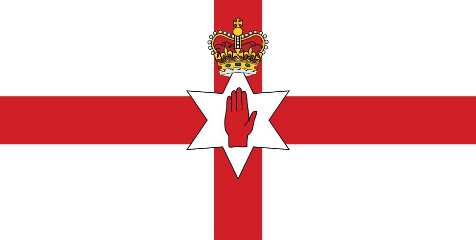 FLAGGFAKTA : Nord-Irland har ikke et offisielt flagg, fordi det ikke finnes et flagg landets politiske partier er enige om. Ulster-banneret, vist her, var myndighetenes flagg fra 1953–72. Det blir fremdeles brukt av noen idrettslag, inkludert Nord-Irlands fotballag.