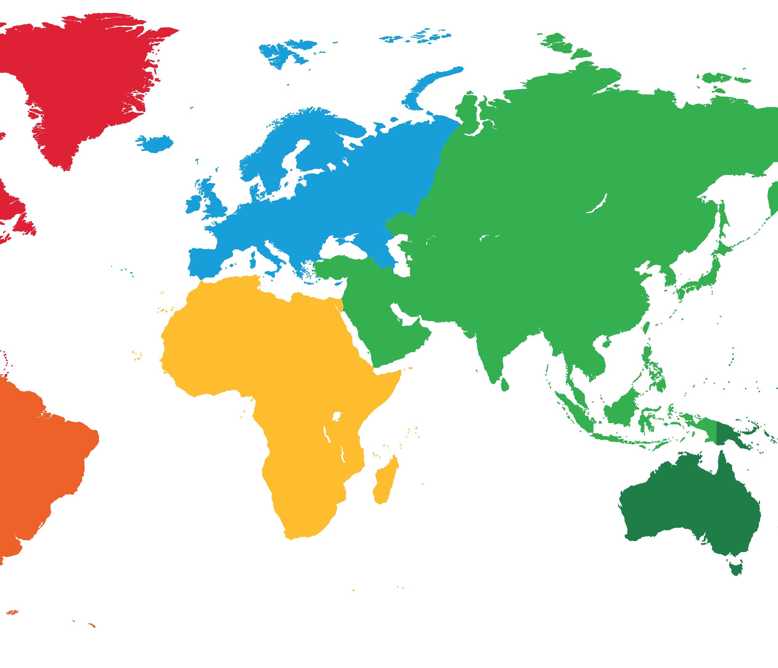 Vi har syv verdensdeler og fire–seks kontinenter, avhengig av definisjonen. Verdensdelene er i hovedsak bestemt av befolkningsgrupper og kultur, mens kontinenter er de store sammenhengende landområdene. Kontinentet Eurasia består for eksempel av verdensdelene Europa og Asia.