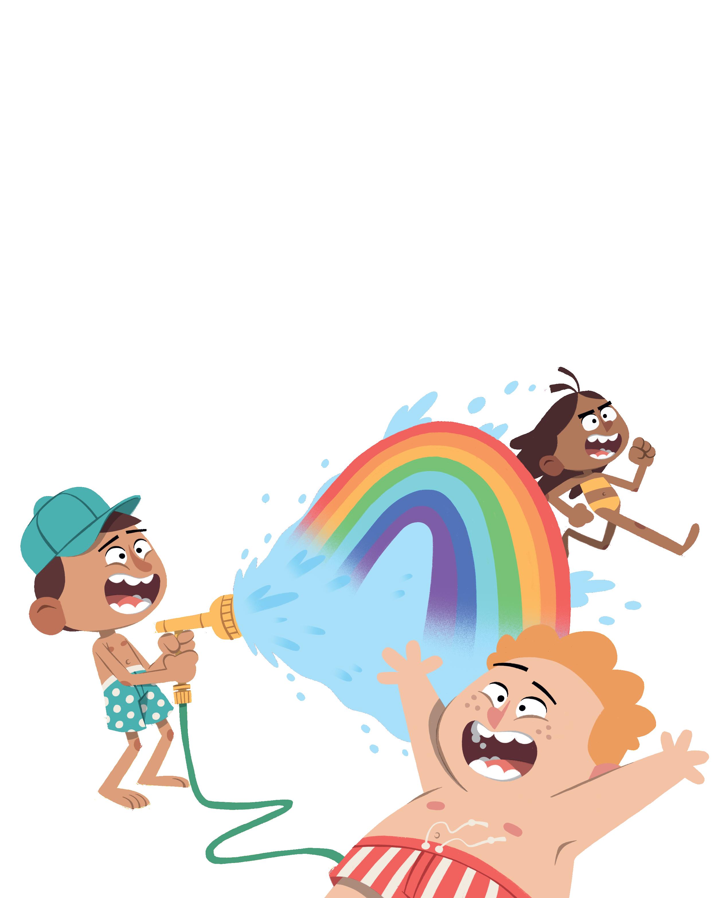Hvis du vil lage din egen regnbue, trenger du bare en hageslange, vann og litt sollys. Står du med ryggen til sola og spyler med vannet i bittesmå dråper, kan du lage en nesten helt rund regnbue!