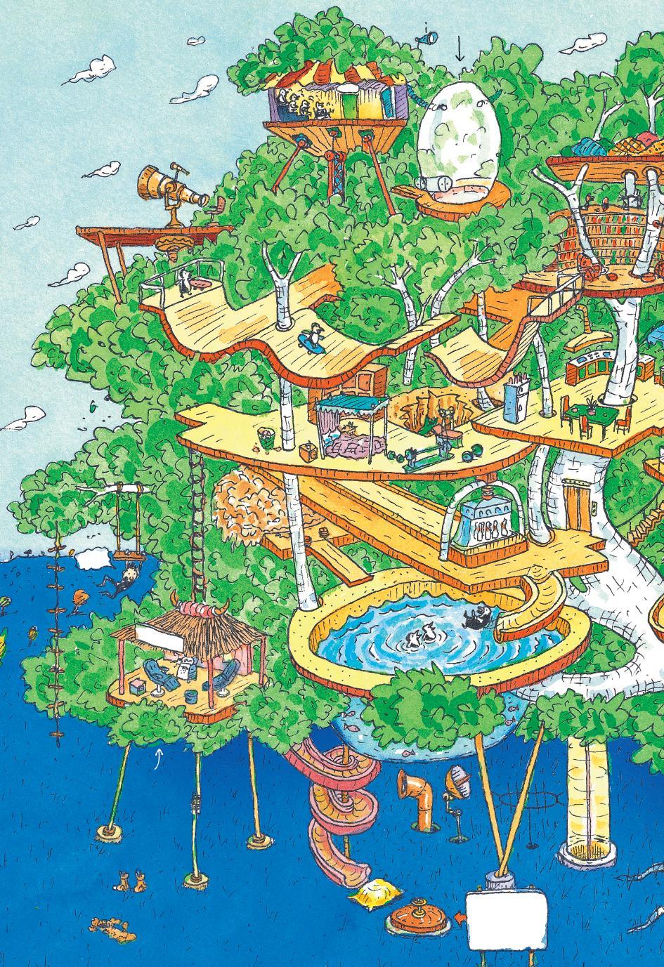 Andy og Terry har utvidet trehuset med 13 nye etasjer! Les den vanvittige historien om hvordan de møttes: Det er en historie om den sinnssyke sjørøveren kaptein Treskalle, om å vaske underbuksene sine i et haibasseng, og om å finne veien ut av Dødens labyrint. Og hvorfor det kan være greit å alltid