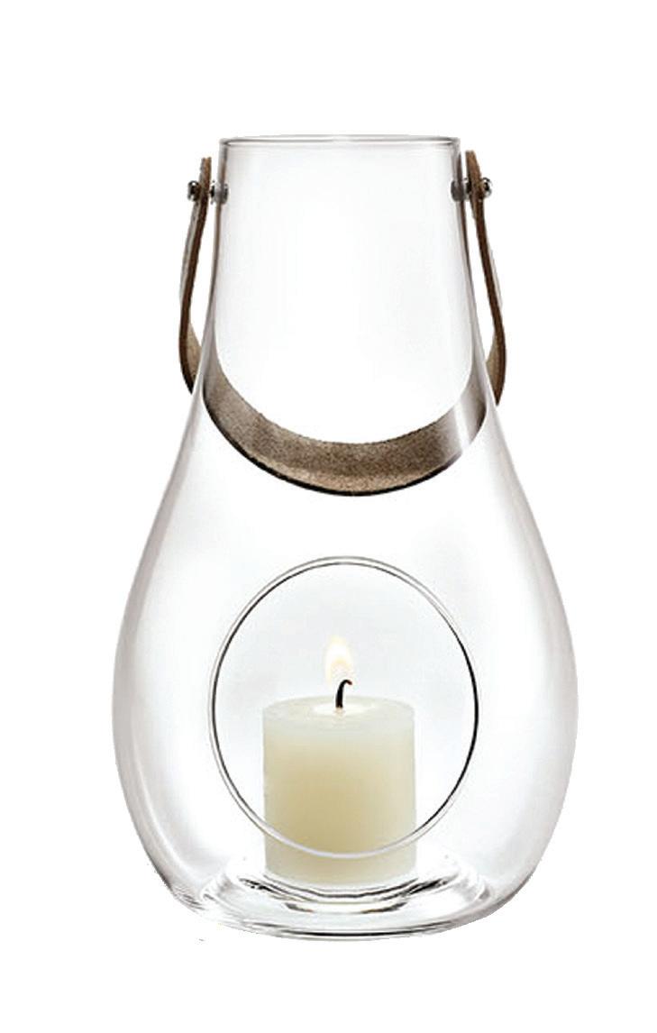 Holmegaard presenterer her glassdesign som gjør øyeblikkene enda vakrere – både innendørs og ute. De munnblåste lanternene med lærhåndtak og rund åpning er håndlaget av Holmegaards erfarne kunsthåndverkere. Lyslykt medium m/hank, høyde 24 cm.