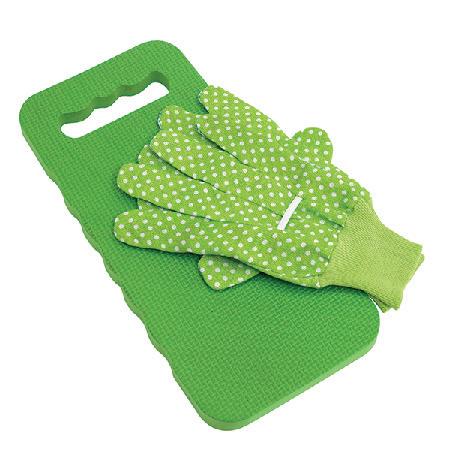 Praktisk kneunderlag og hagehansker i solid gummimateriale. Hanskene er i en størrelse som passer de fleste.