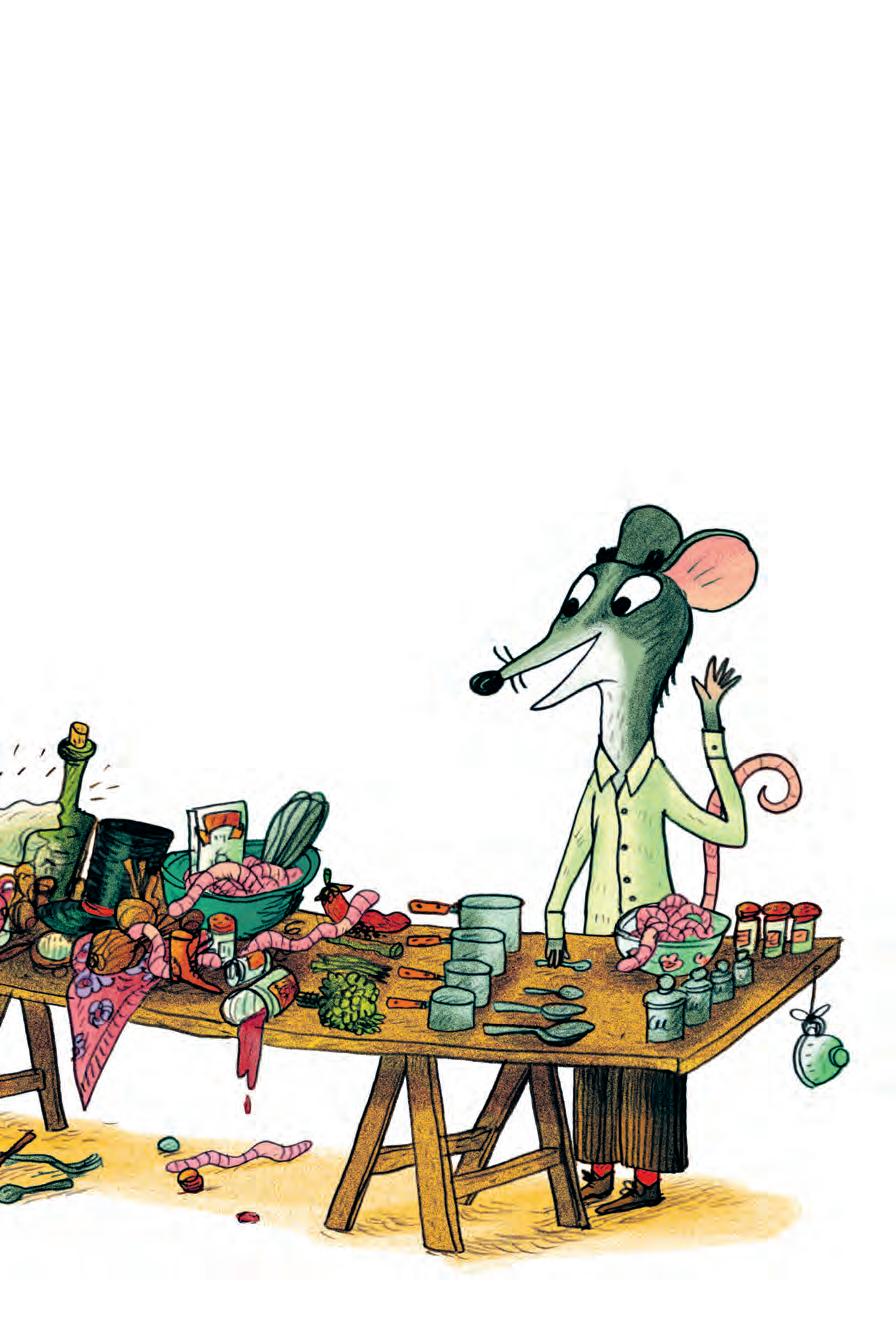 « M isforstå meg rett, Mus! Du er skogens beste kokk. Men for å lage en meitemarkpai ingen har sett maken til, må det mer til enn å bare følge en oppskrift», erter Muldvarp.