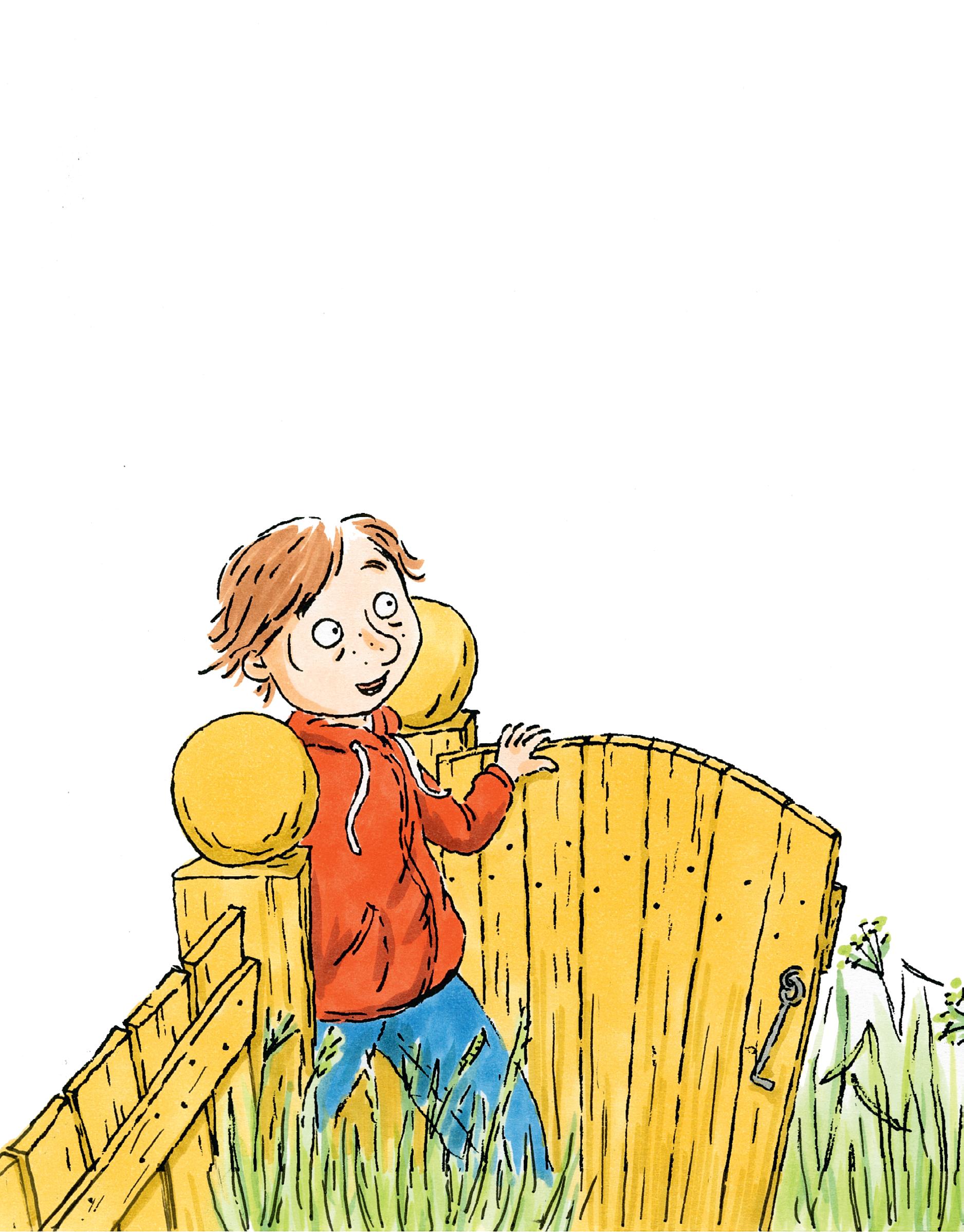 Martin skal besøke farfar. Han åpner porten til farfars hage.
