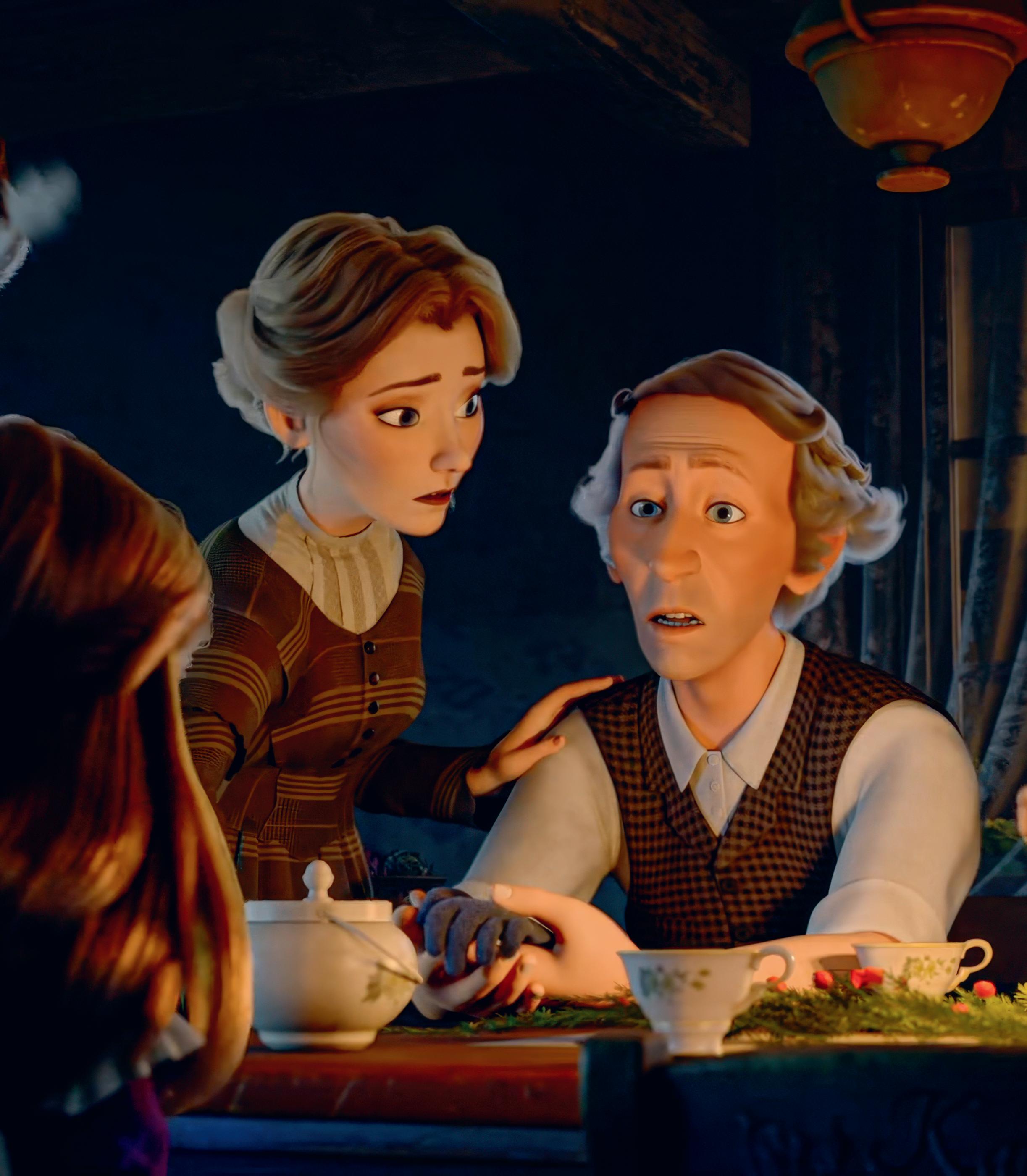 Kai og faren hans, Severin, på middag. Moren til Gerda, Hilma, holdt på å rydde opp, og borte ved vedovnen var besta i ferd med å lage kamillete med honning i til alle sammen. Katten Mons malte fornøyd i kurven sin.