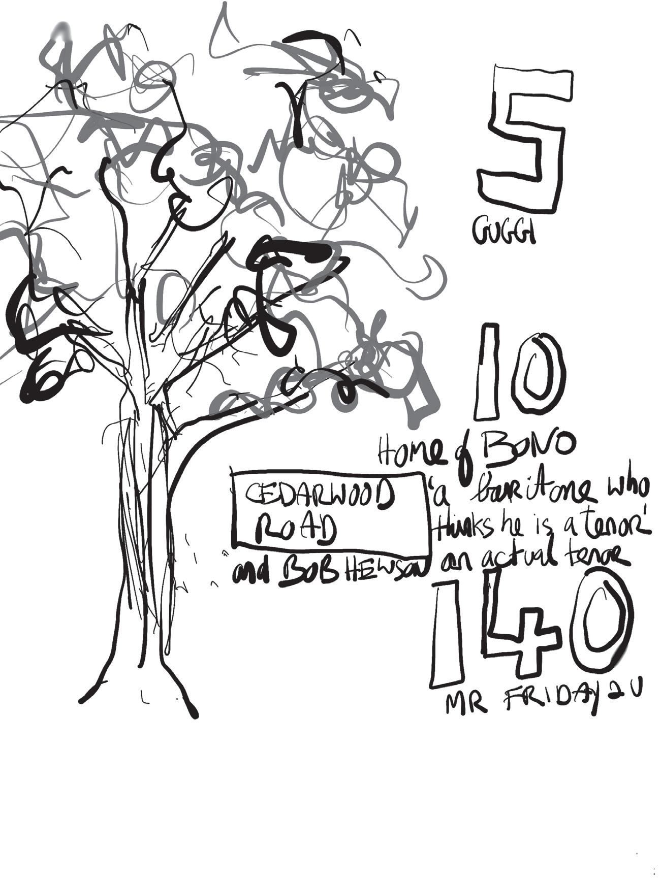 Nesten tjue tusen mennesker synger refrenget på «The Miracle (Of Joey Ramone)», og da Edge, Larry og Adam går helt forrest på scenen, går jeg fram og møter dem fra motsatt ende av arenaen. Jeg går gjennom publikum, gjennom støyen. I tankene er jeg sytten og går fra huset mitt på Northside i Dublin, ned hele Cedarwood Road, på vei til bandøvelse med disse mennene for så mange år siden, da de også var gutter.