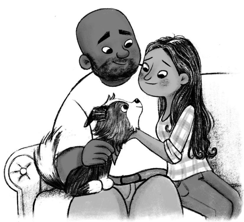 og menneske-pappaen min. De lar meg sitte på fanget, og de klør meg bak øret og kaster ball til meg.