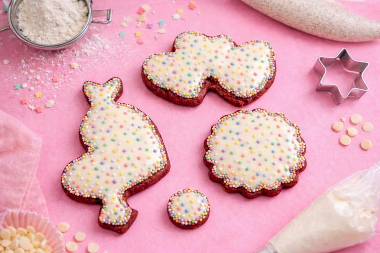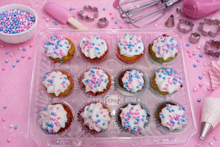 Cubierta: Chocolate blanco. Chocolate negro. Grajeas. Chips.