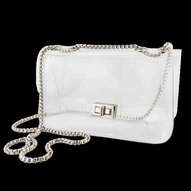 The convertible crossbody easily converts from a handbag to a crossbody bag with this stylish 2-in-1 design. Just double up the uniquely designed chain strap for a hand hold, or let the chain slide to its fully extended position for a shoulder bag design. For a simpler style, stick with our all clear design. To dress it up, choose one of our PU Leather accented options. The main compartment is perfect for securely storing your personal items with its top flap and turn lock closure.