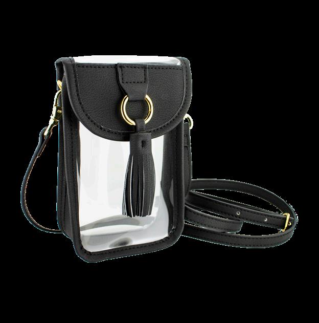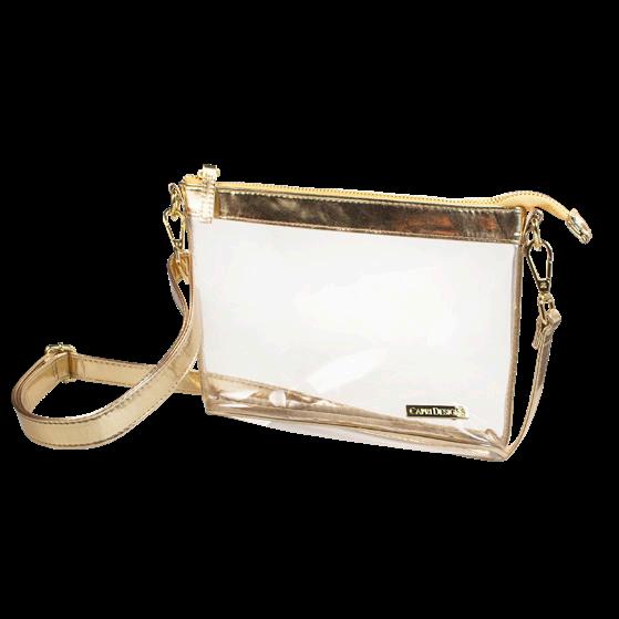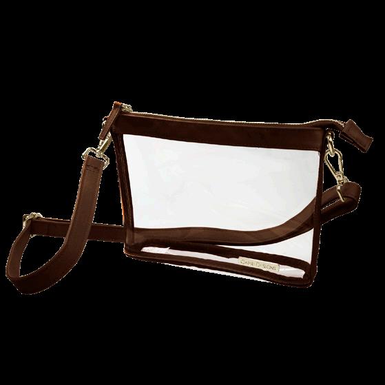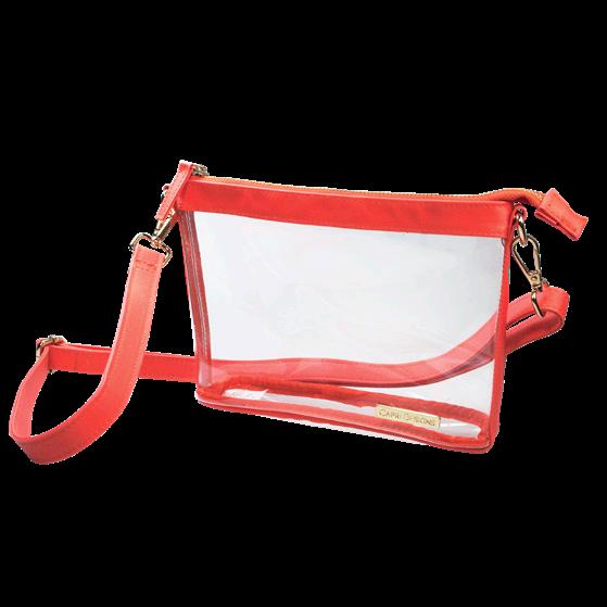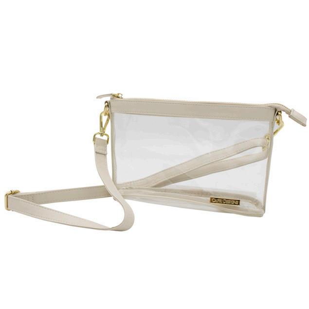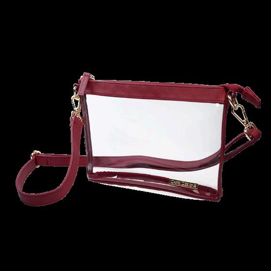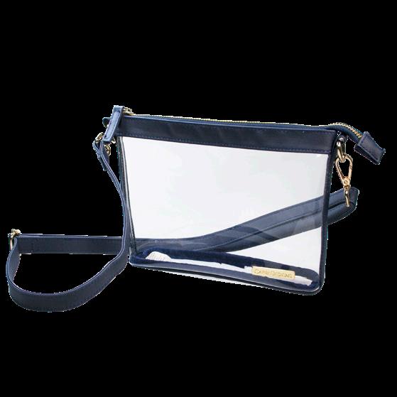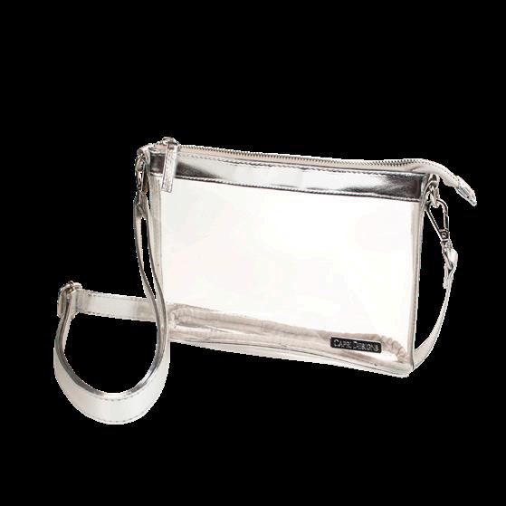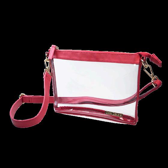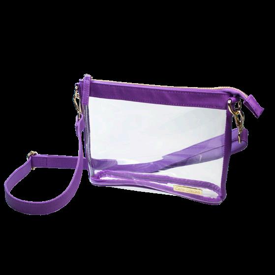 Our stadium compliant crossbody features a clear PVC body with classic alloy hardware accents. The main zippered compartment is perfect for securely storing your personal items. Easily convert your accessory from a crossbody to a clutch by removing the adjustable and detachable shoulder strap.