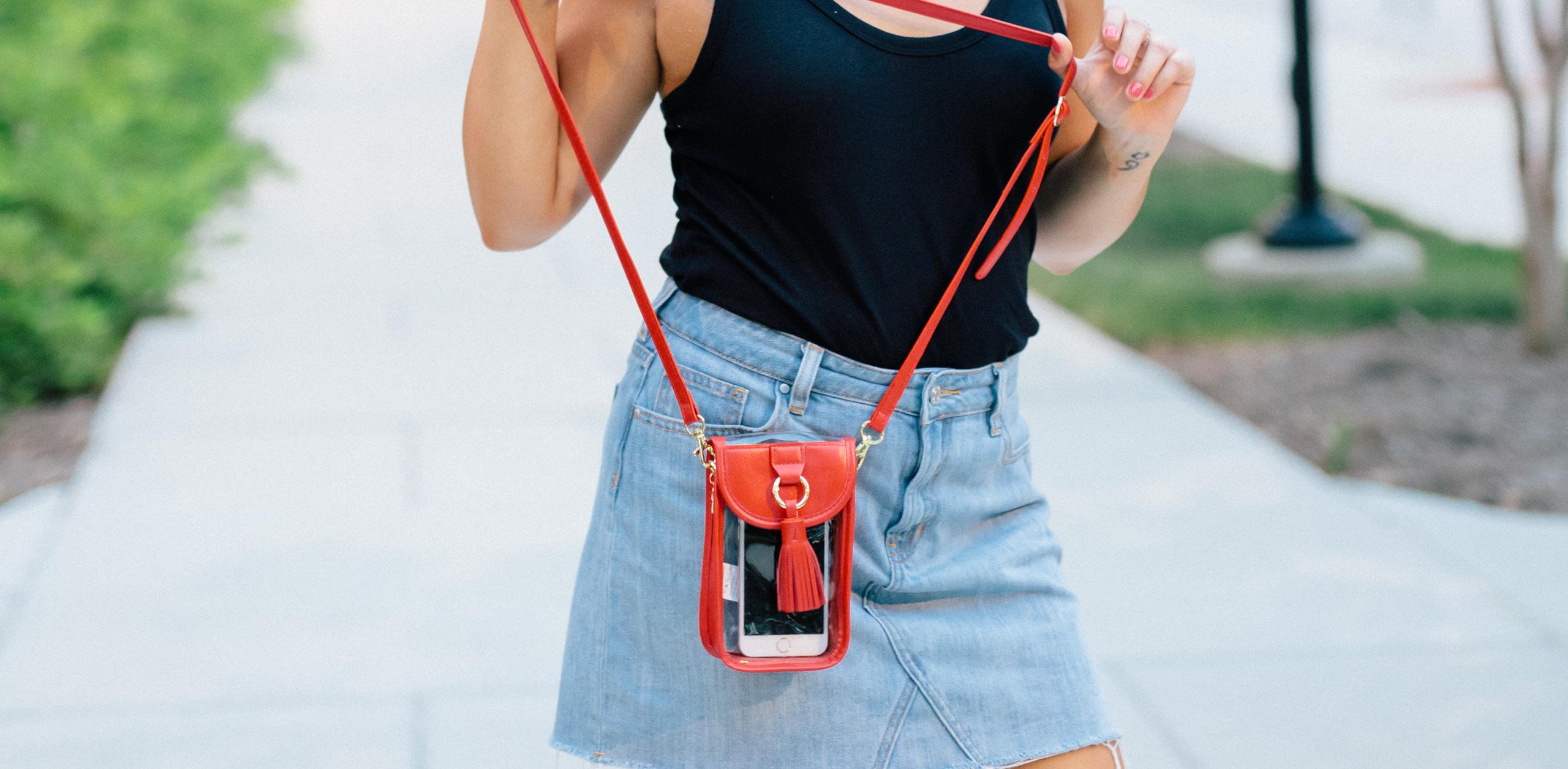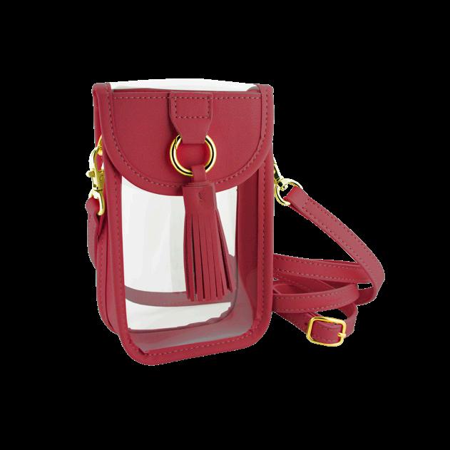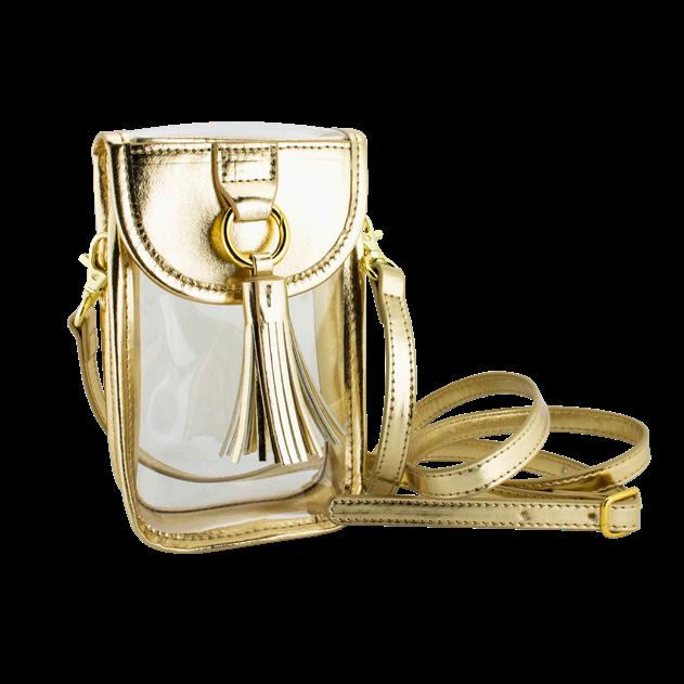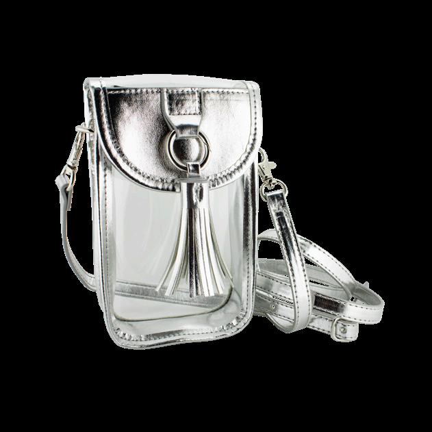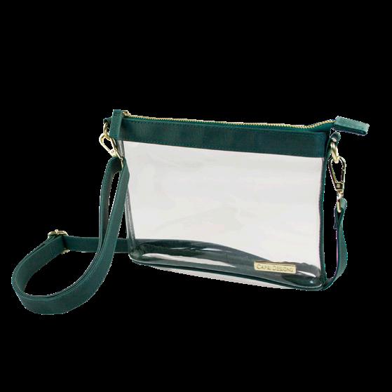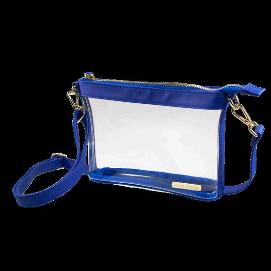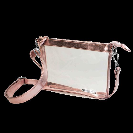 Our stadium compliant crossbody features a clear PVC body with classic alloy hardware accents. The main zippered compartment is perfect for securely storing your personal items. Easily convert your accessory from a crossbody to a clutch by removing the adjustable and detachable shoulder strap.