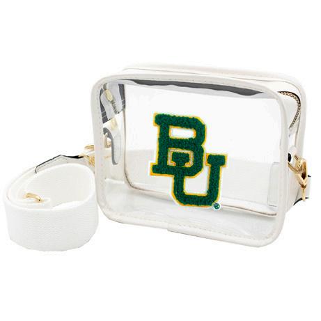 Our stadium compliant crossbody features a clear PVC body with your choice of gold or silver hardware accents and a beautifully timeless accent chain. The main compartment features a classic kiss lock closure for securing your personal items within. Pairs perfectly with our interchangable straps for added style.