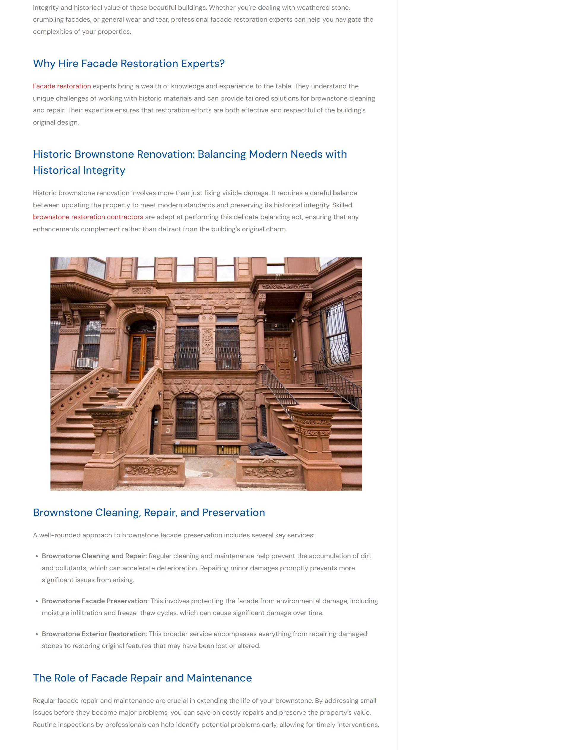 Brownstone restoration services is more than just an aesthetic endeavor; it’s about preserving the structural integrity and historical value of these beautiful buildings. Whether you’re dealing with weathered stone, crumbling facades, or general wear and tear, professional facade restoration experts can help you navigate the complexities of your properties.