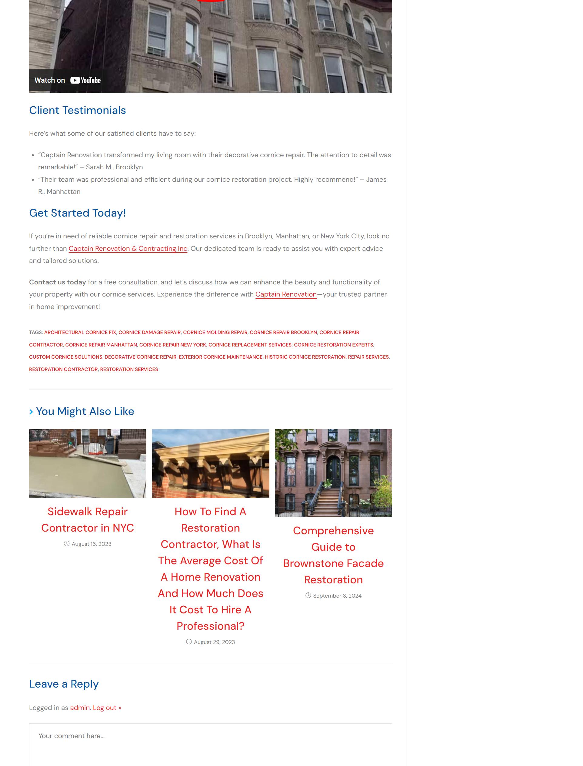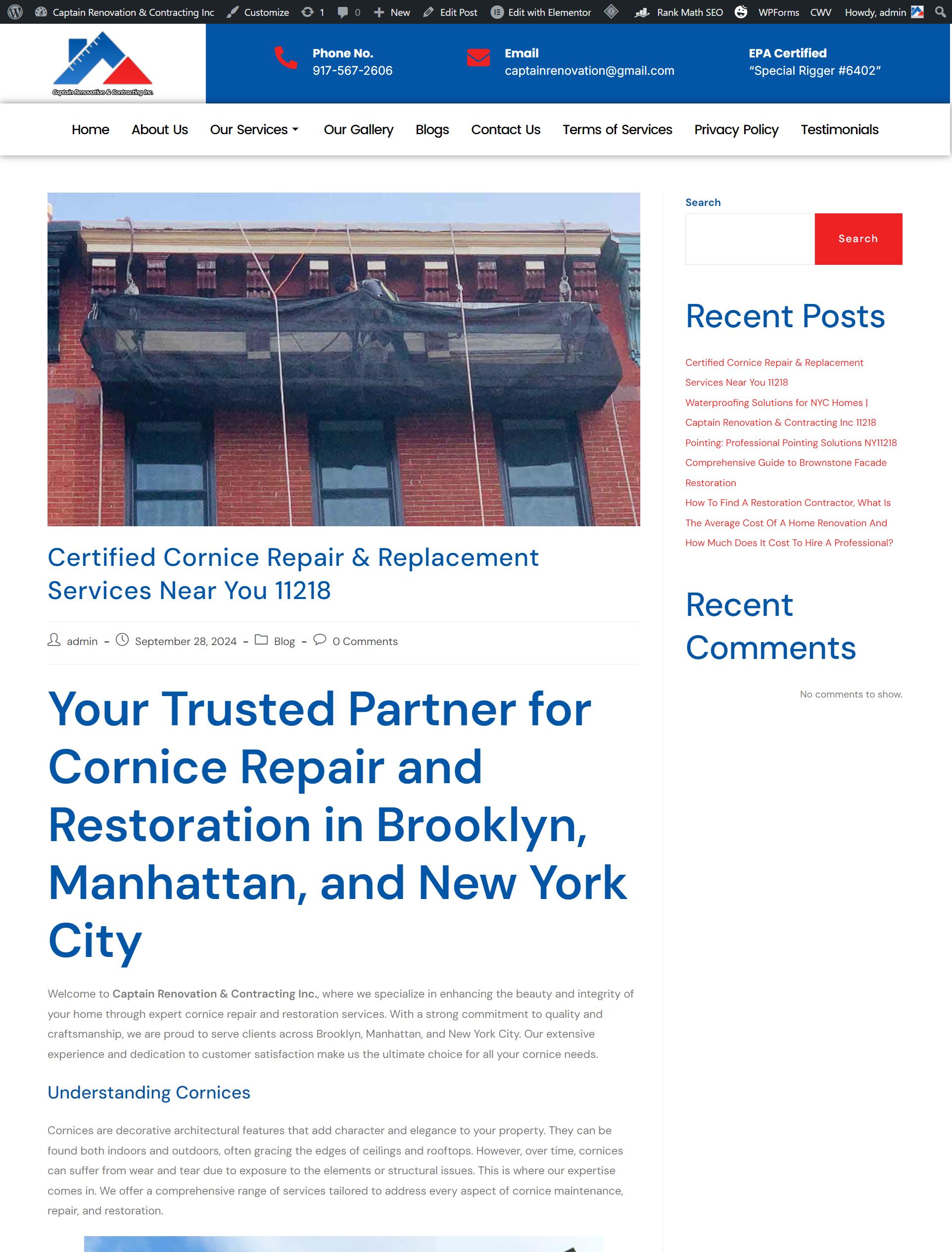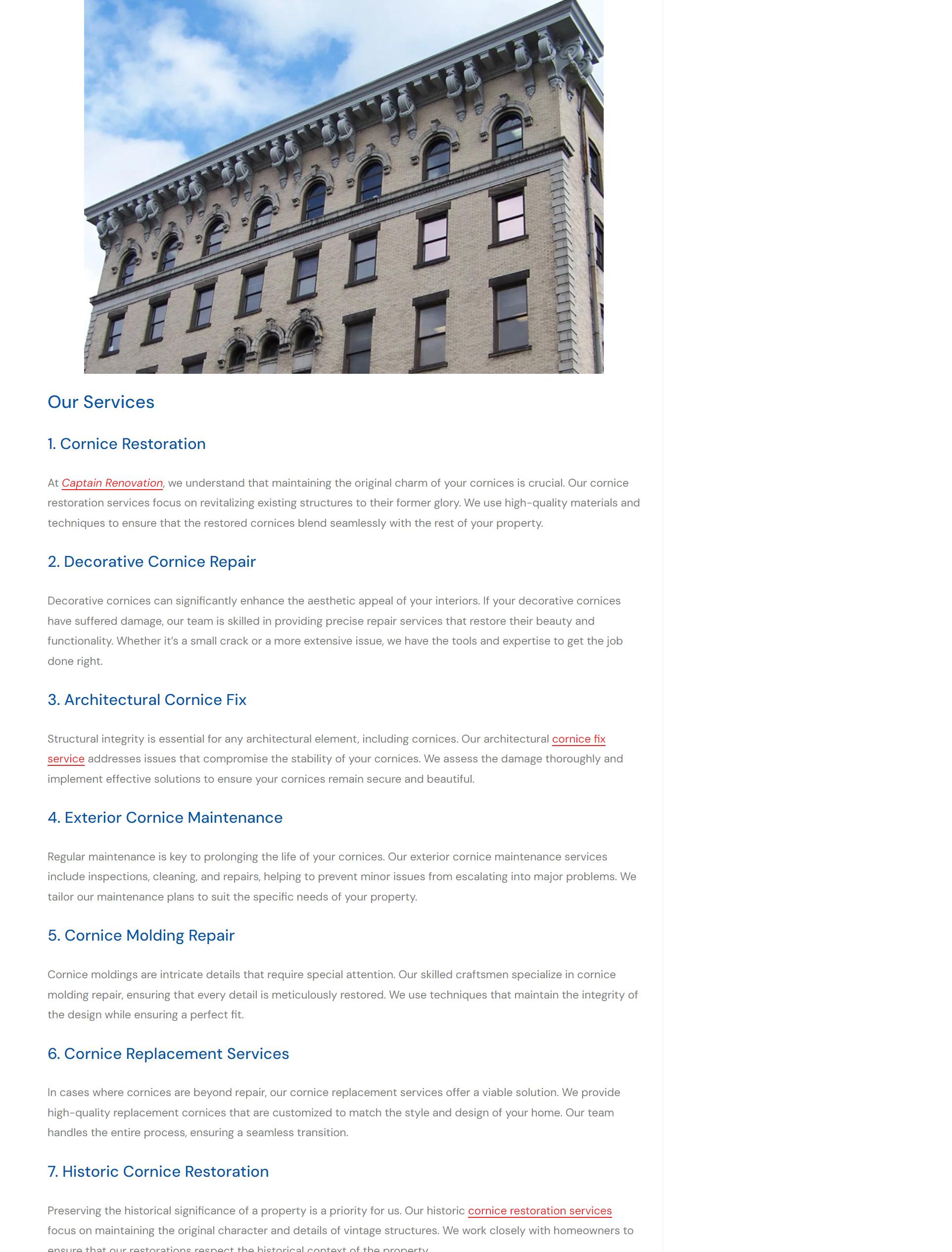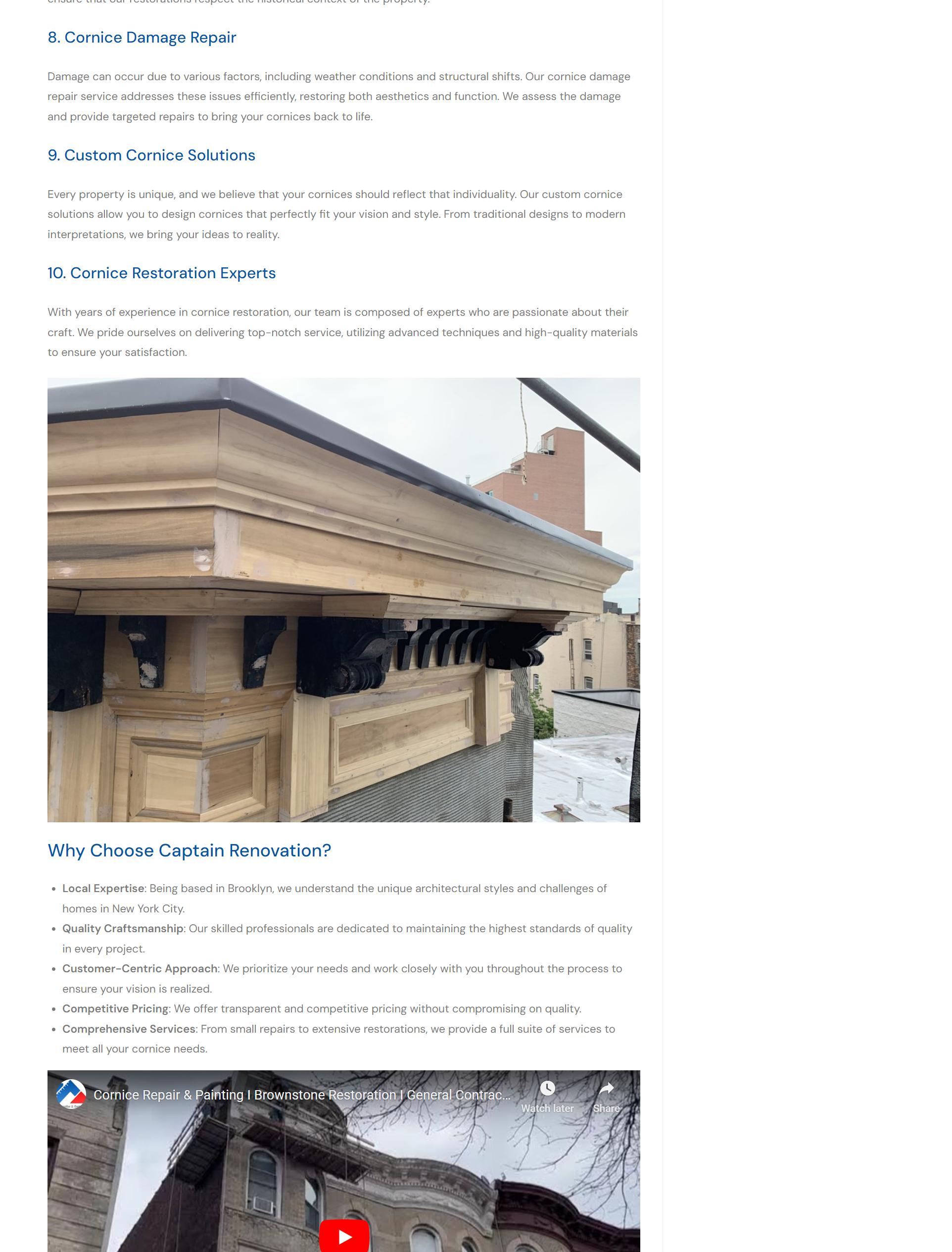 Welcome to Captain Renovation & Contracting Inc., where we specialize in enhancing the beauty and integrity of your home through expert cornice repair and restoration services. With a strong commitment to quality and craftsmanship, we are proud to serve clients across Brooklyn, Manhattan, and New York City. Our extensive experience and dedication to customer satisfaction make us the ultimate choice for all your cornice needs.