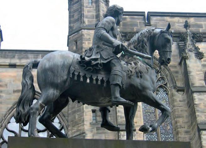 Statue Four: Hordes of tourists walk past these two Scottish warriors every day at the entrance to Edinburgh Castle. Robert the Bruce wears the crown whilst William Wallace stands guard with his sword and shield.