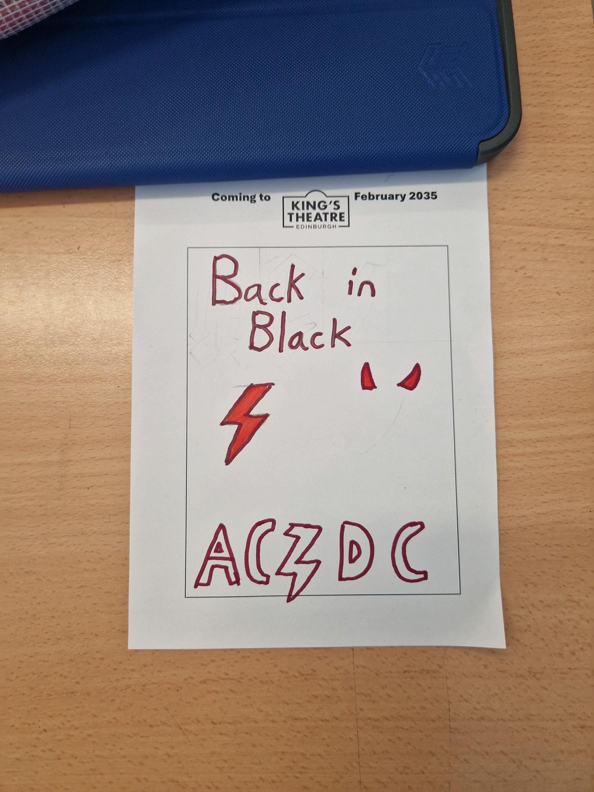 Throughout February, Primary 6 & 7 pupils from Tollcross took part in a series of activities themed around ‘Heritage through Musical Theatre’ which focused on teaching pupils about features specific to musical theatre. Using examples from one of the final productions at the Sunshine on Leith’, pupils were inspired to create their own flyer for an imagined musical - based on their favourite musicians - for the King’s Theatre’s 2035 programme. Who knows? We might be seeing I’m Feeling Blue: The Billie Eilish Musical on
