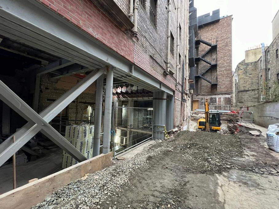 Meanwhile, on the other side of the building, significant basement excavation work has been completed to make space for the kitchen which will serve the new on-street cafe at Stage Lane (between the King’s and Bennets Bar).