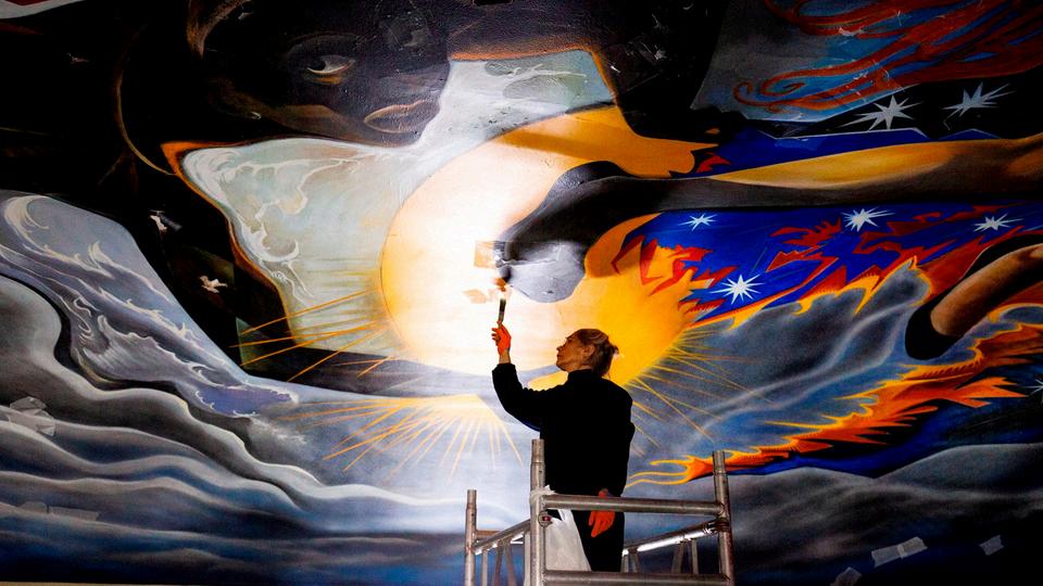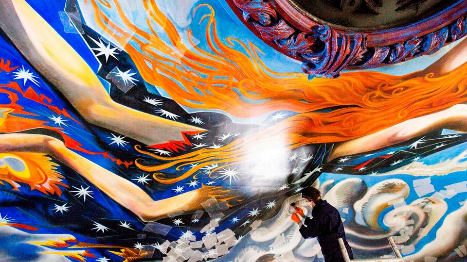 The late John Byrne created the magnificent 78.5-square-metre mural in 2012, working alongside a small team that included his daughter, Celie Byrne. Spanning the auditorium dome, the piece was completed over six weeks before its grand unveiling in 2013.