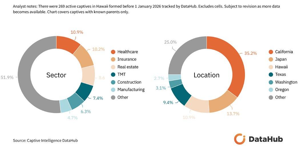 Hawai’i captives at the end 2025, breakdown by sector and parent location