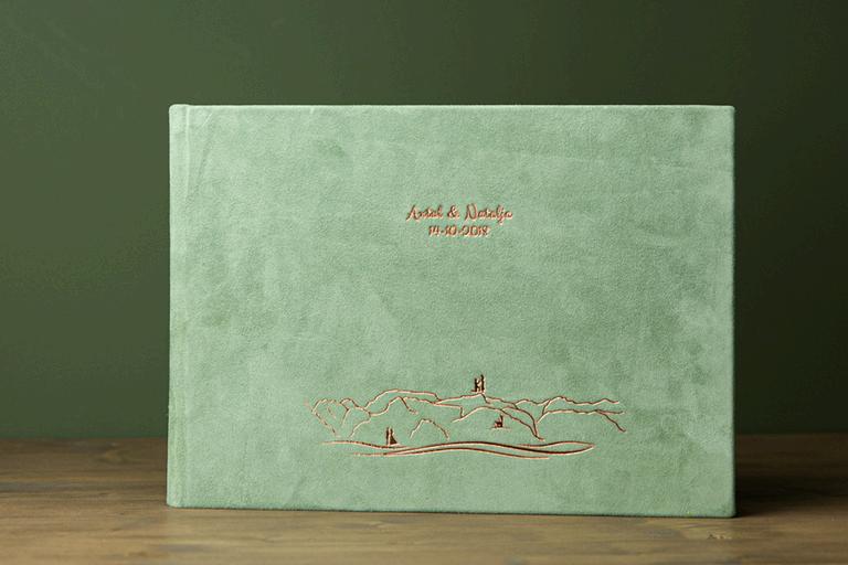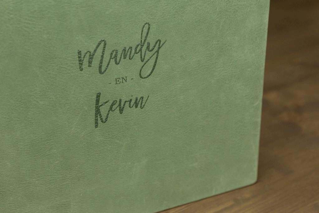 Of wil je wel een naam op de voorkant maar dan nét even iets anders? Dan kun je kiezen voor een borduring of een album met een lederen streep