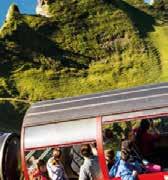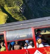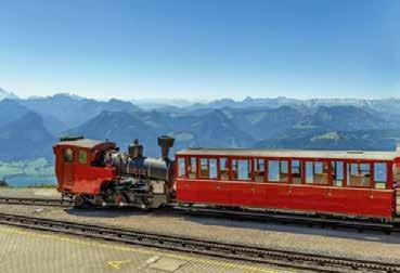 4e jour, samedi – Au sommet de l’Oberland bernois Ce matin, trajet en car jusqu’à Lauterbrunnen. Le train de la Wengneralp prend ensuite le re lais jusqu’à la Petite Scheidegg (2061 m). Là, nous admirons la vue la plus spectaculaire sur la célèbre face nord de l’Eiger, puis le train de la Jungfrau nous conduit encore plus haut, à 3454 m d’altitude, au sommet du Jungfraujoch Top of Europe. Le panorama y est littéra lement époustouflant, avec d’un côté la vue sur le Moyen-Pays et de l’autre l’immense mer de glace du glacier d’Aletsch et ses «quatre mille». En fin d’après-midi, retour en train à Grindelwald. Le car nous ramène enfin à l’hô tel, où nous sommes attendus pour le repas du soir. 5e jour, dimanche – Retour Voyage retour, la tête remplie d’inoubliables souvenirs de notre belle Suisse. Trajet en car spécial tout confort 2 nuits à l’ hôtel Grischuna ***, à Bivio 2 nuits à l’hôtel Kreuz ***, à Leissingen 4 x petit déjeuner à l’hôtel 4 x repas du soir à l’hôtel Parcours à bord d’une voiture panoramique