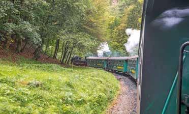 4e jour, mercredi 6 septembre 2023 –Weisseritztalbahn – Suisse saxonne Après le petit déjeuner, nous profitons encore une fois des charmes du romantisme ferroviaire à vapeur. Sur une voie de 26 km, le Weisseritztalbahn gravit 350 m de déni velé et franchit plus de 34 ponts, au fil d’un itinéraire magnifique! Arrêt à Pirna pour le repas de midi. Devant nous s’étend un paysage aussi splendide qu’insolite en grès fin de l’Elbe: la Suisse saxonne! C’est l’un des plus beaux paysages d’Europe que vous adorerez aussi! Quartier libre le soir.