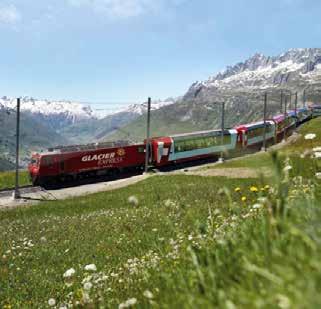 2e classe du Bernina Express, de Pontresina à Poschiavo Parcours à bord d’une voiture panoramique classe du Glacier Express, de Coire à Andermatt Croisière sur le lac des Quatre-Cantons, de Flüelen à Brunnen Parcours à bord du nouveau téléphérique