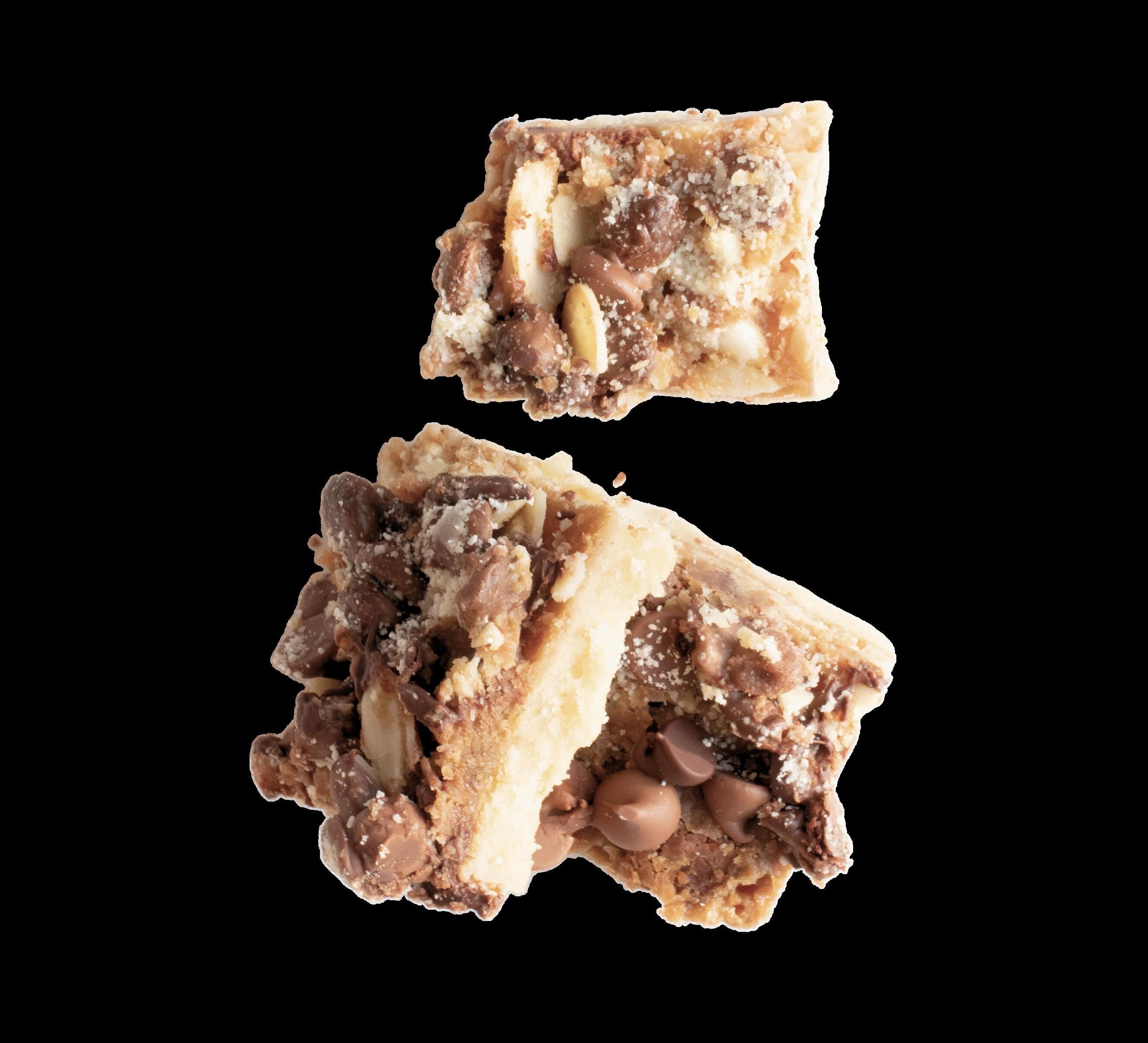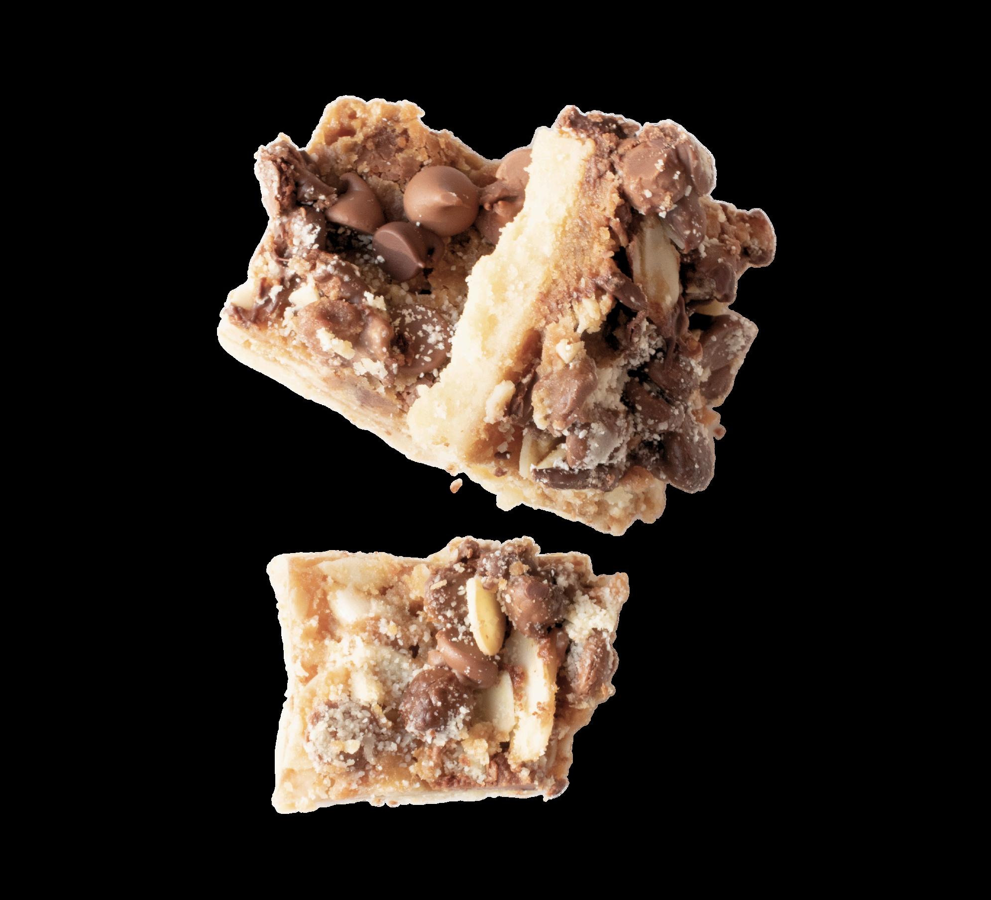 Allowtocool.Foreasiercutting,taketheentire cookiebaroutofthepanandplaceonacutting board.Cutintosquaresandstoreinanairtight container.