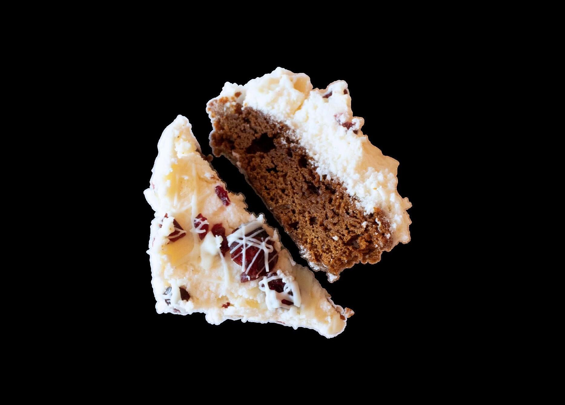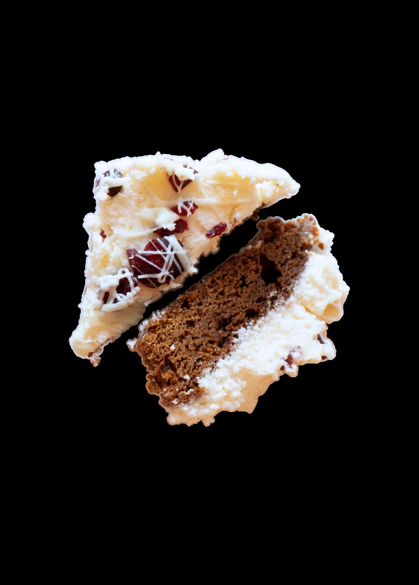 Sprinkle1/4cupofdicedcranberriesanddried gingeroverthefrostingonthecake.