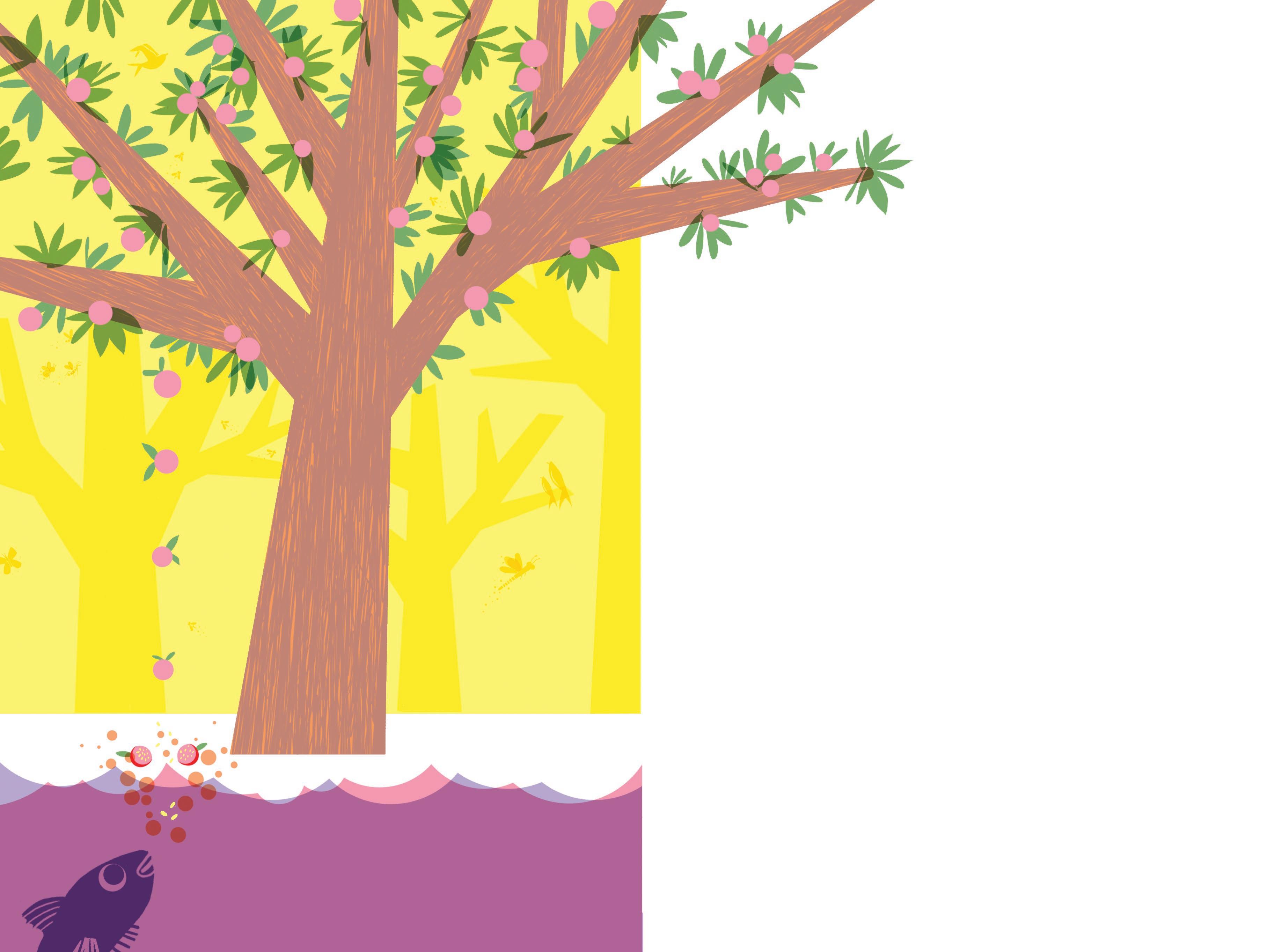 Para surpresa da Árvore, o peixe saltou acima da superfície e cuspiu, em um pedaço de terra ao lado, a semente de goiaba guardada na boca.