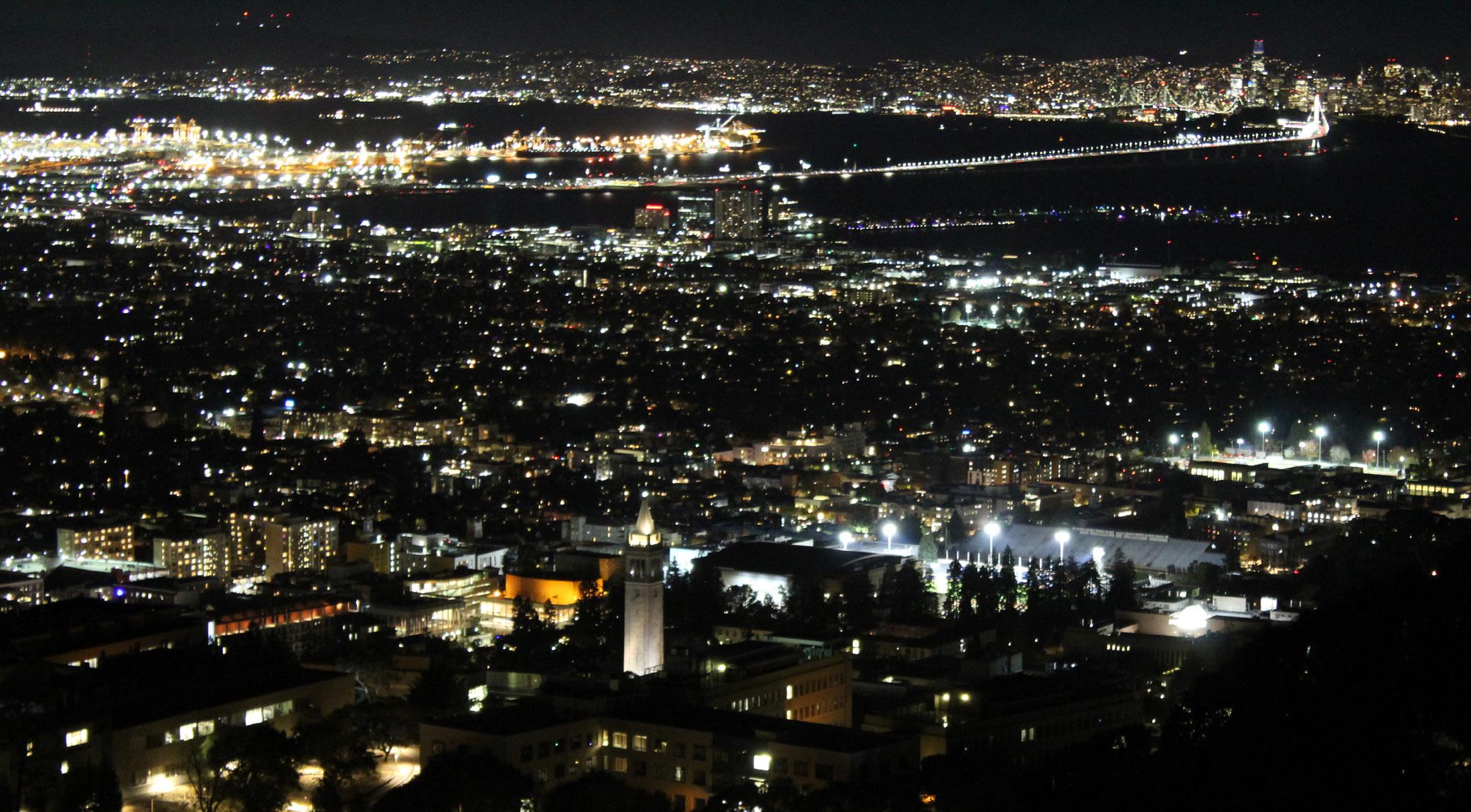 Behind UC Berkeley’s football stadium and past Lawrence Berkeley National Laboratory, alongside the estates nestled into the hill’s embrace, Grizzly Peak rises. On any clear night, if you wind your way along the hill’s curve, the city unfolds beneath you bit by bit like a sparkling map, its largeness daunting, sundry magnetism breathtaking and big.