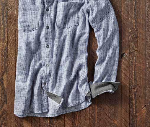 A CUT ABOVE KHAKI It’s time for a better-built khaki. Designed for your satisfaction with a trimmer fit and a softwashed textural fabric, it’s made of durable all-cotton Bedford fabric that’s turned on its side and given a long, soft wash. Welt coin pocket and side cell slot. Chambray trim at inner waist. Soft plaid lines the pockets. Imported in British Khaki, Cerulean Blue (thrown on page 18) or Granite (thrown on page 16). Men’s sizes 30-40 (even) also 33 and 35 all with 32" inseam. [125002] $99