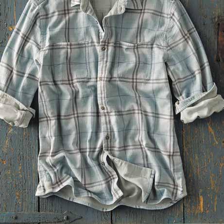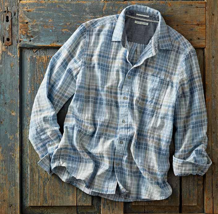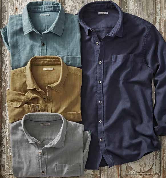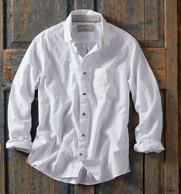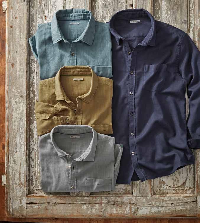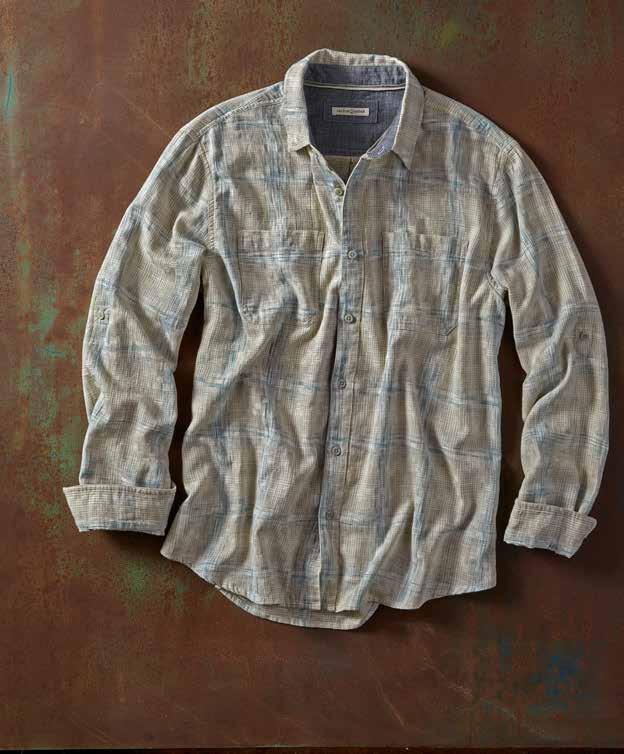 Mineral Twill Washed down to an old-favorite look and feel, we love this shirt’s cool-wearing fabric blend and desert landscape-inspired colors. Adding to the relaxed vibe are rounded flaps on the buttoned chest pockets, patterned herringbone tape at the inner button placket, and dashes of contrast chambray trim at the inner collar, back yoke locker loop, sleeve placket binding, and side seams. 58% linen, 42% cotton. Imported in Sand, Seaglass, or Espresso. Men’s sizes: S-XXL. [133780] $79
