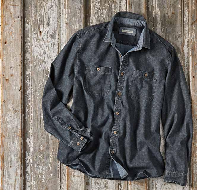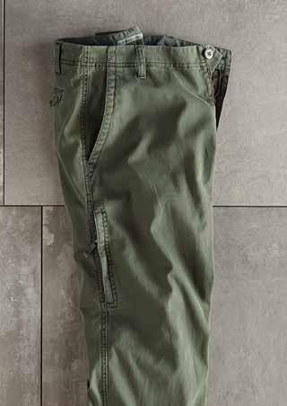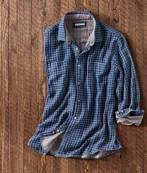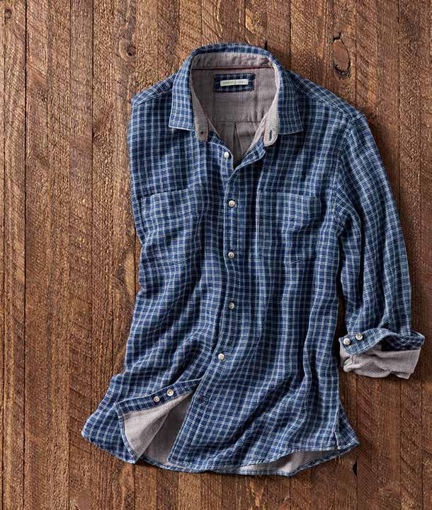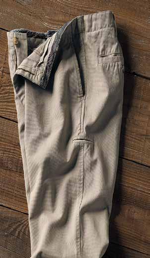 A Cut Above Khaki It’s time for a better-built khaki. Designed for your satisfaction with a trimmer fit and a soft-washed textural fabric. Durable all-cotton Bedford fabric is turned on its side and given a long soft wash. Welt coin pocket and side cell slot. Chambray chain stitch contrast found inside waistband. Soft plaid lines the pockets. Imported in Granite, British Khaki (thrown on page 29), Cerulean Blue (thrown on page 13). Men’s sizes 30-40 (even) also 33 and 35 all with 32" inseam. [125002] $99