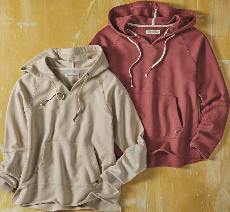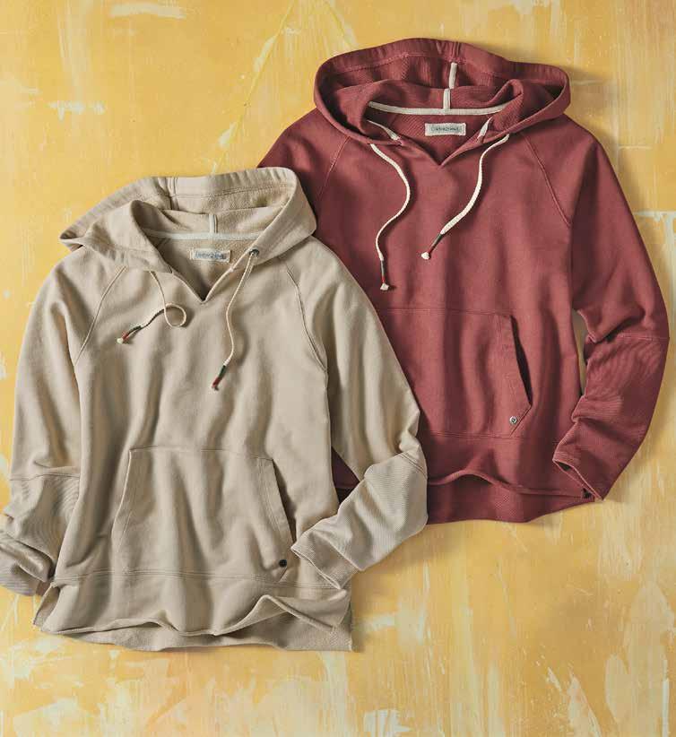 CASITA HOODIE The requisite hoodie is reimagined with elevated details. Made of an all-season, soft-draping French Terry, it has an easy silhouette, raw, rolled trim hem, and deep rib-knit cuffs that streamline the sleeve. Finished with multicolor thread end-caps and a single rivet trim at the kangaroo pocket. 100% cotton body. Imported in Putty or Terracotta. Women’s sizes: XS-XL. [344115] $8 9