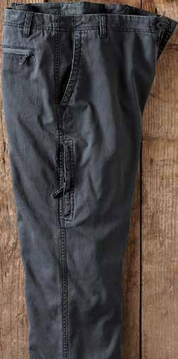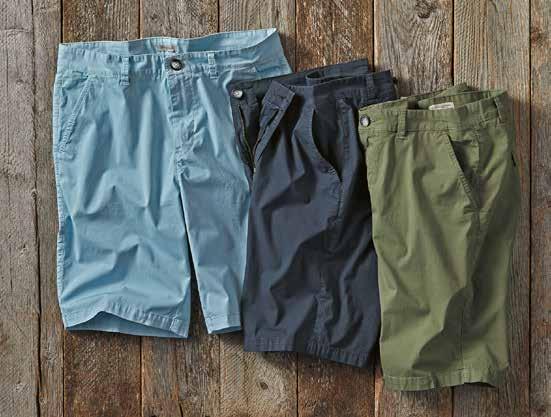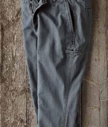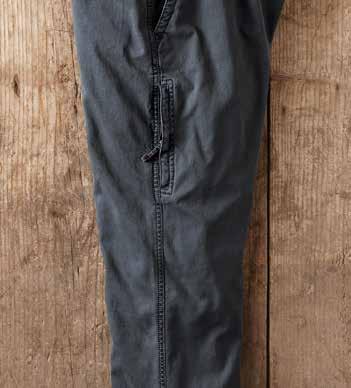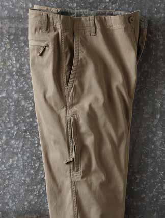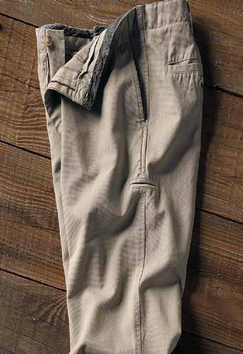 A Cut Above Khaki It’s time for a better-built khaki. Designed for your satisfaction with a trimmer fit and a soft-washed textural fabric. Durable all-cotton Bedford fabric is turned on its side and given a long soft wash. Welt coin pocket and side cell slot. Chambray chain stitch contrast found inside waistband. Soft plaid lines the pockets. Imported in Cerulean Blue, British Khaki (thrown on page 29) or Granite (thrown on page 9). Men’s sizes 30-40 (even) also 33 and 35 all with 32" inseam.