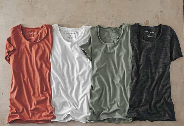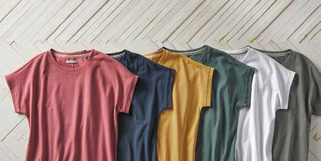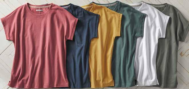 CAPSULE TEE Peachy soft with a substantial feel, this is your anywhere, anytime, all-season tee. Featuring an open crewneck and a flattering dolman sleeve, we suggest collecting all colors. Slightly boxy, relaxed fit. 100% cotton. Imported in Salmon, Navy, Mustard, Eucalyptus, White, or Granite. Women’s sizes: XS-XL. [344111] $4 9