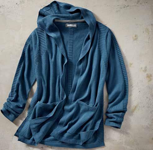 TERRACOTTA SWEATER With its warm, sun-washed color and array of unique stitches, this is the cardigan we’ll be reaching for all season long. Features half cardigan knit sleeves and front body, with reverse jersey yoke and back body panels. Rib knit finishes the open front, side entry pockets, and hem of this flattering drop-shoulder silhouette. 100% cotton. Imported in Adobe. Women’s sizes: XS-XL. [355098] $ 129