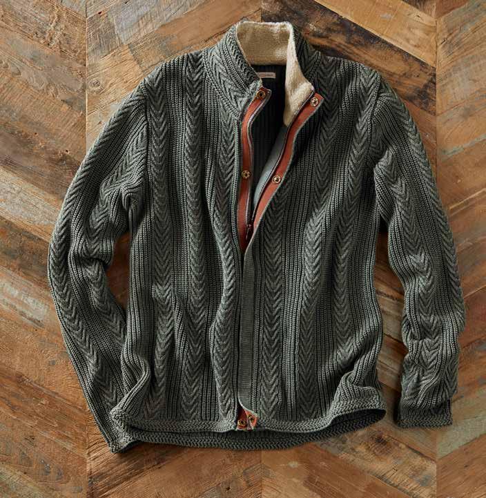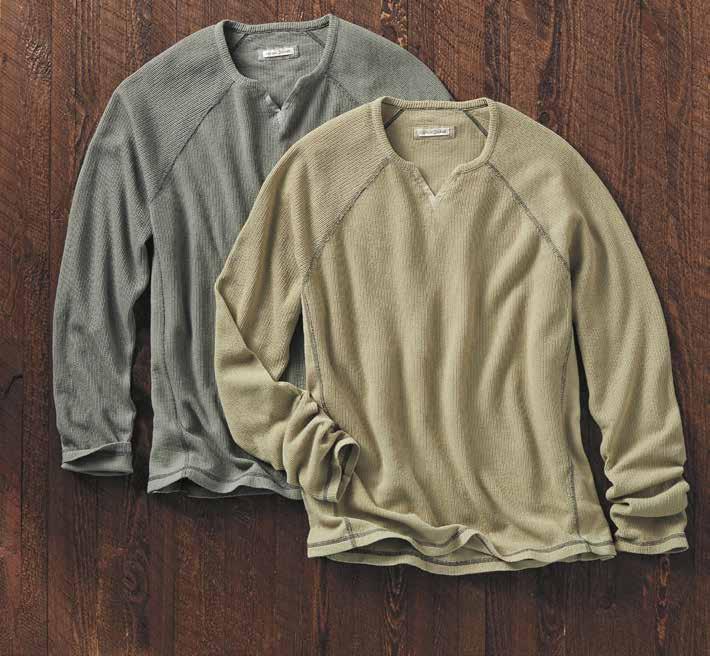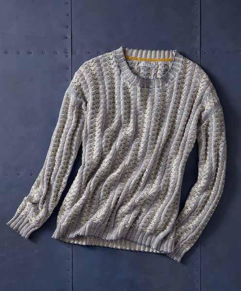 HEDGEROW SWEATER Usher in the new season with this refreshing update to the pullover sweater. Featuring an intricate, open stitch with a leafy motif, it has an airy look and a soft feel that’s especially appealing. Rib knit trim at the softly rounded crewneck, cuffs, and hem. Flattering drop-shoulder silhouette. 100% cotton. Imported in Stone. Women’s sizes: XS-XL. [355095] $1 29