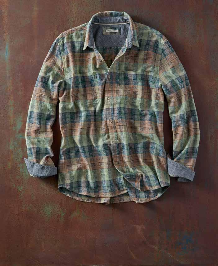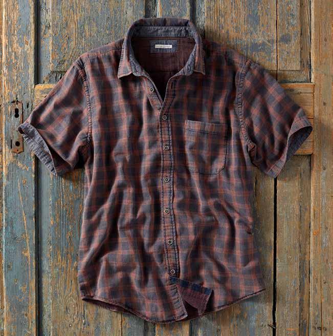 We don’t know what we love more, the rustic colors reminiscent of sunbaked tiles or the soft, lightweight feel of this double cloth. With a plaid on the outside and a fine ticking stripe inside, it’s cool-looking throughout. Chambray trims the inner collar and button placket binding. Single drop-in chest pocket. 100% cotton. Imported in Multi. Men’s sizes: S-XXL. [133817] $89