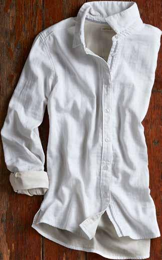 Pillowy soft, and lofty-yet-lightweight thanks to the cotton gauze construction, we love this play on the classic white shirt. Features a subtle shadow stripe and fine, multicolor neps (tiny clusters of threads) sprinkled throughout. 99% cotton, 1% poly. Imported in Salt. Women’s sizes: XS-XL. [333144] $ 89
