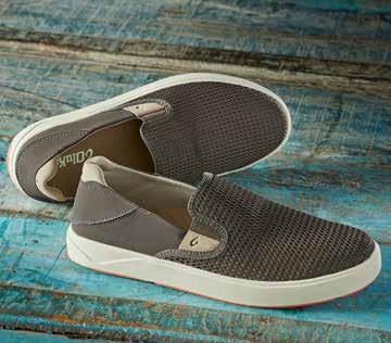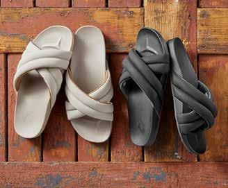 LIDO SLIDE Combining an updated design with comfort and support, the Hila by OluKai is perfect for seaside vacations and lazy pool days. The waterrepellent synthetic slide features puffy crossover straps to give it a modern look, and a cushioned midsole provides all-day support. Non-marking Wet Grip Rubber outsole gives it traction. Imported in Black or Putty. Women’s whole sizes: 6-10. [388295] $8 0