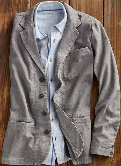 Enigma Blazer Relaxed yet refined. Easygoing yet elegant. This blazer defies classification, giving it limitless outfit possibilities. Made of densely woven linen, the drape is substantial and smooth, and wears more like denim — that’s less prone to crinkling. Specially washed to achieve a soft hand, it’s unlined with clean-finished, bound seams. Four-button front. Welt chest pocket and hip pockets. Single back vent. 55% linen / 45% cotton. Imported in Ash. Men’s Sizes: S-XXL. [111104] $149