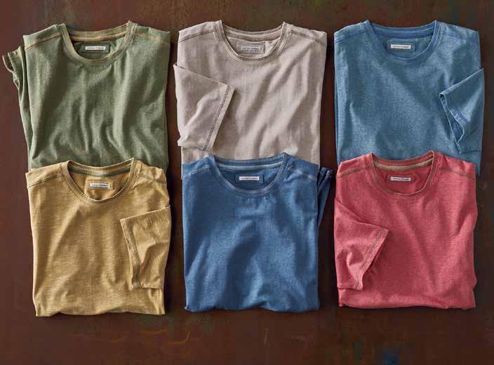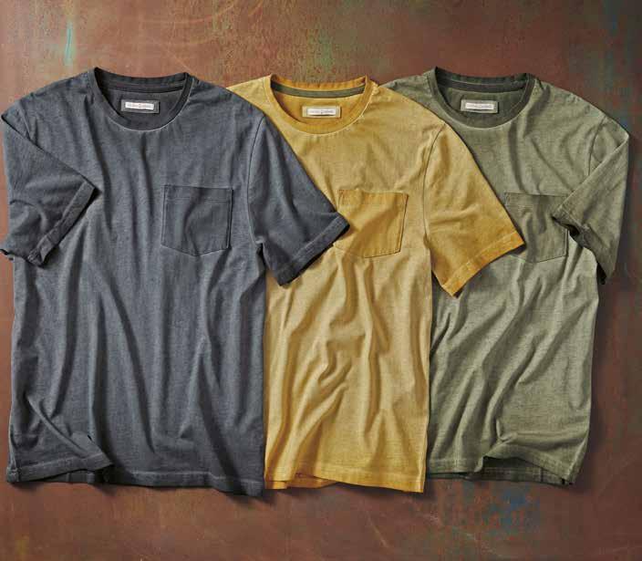 Saturday Tee There’s nothing like the feel of an old-favorite tee. Even better when it’s this soft – fresh out of the box. Made of quality cotton jersey specially washed to give it a vintage patina, it has a classic crewneck and chest pocket. 100% cotton. Imported in Black, Sunflower or Olive. Men’s sizes: S-XXL. [144574] $49