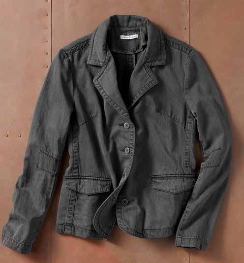 BEACHFRONT BLAZER Think of this as the blazer that took a walk on the beach. Made of a lightweight twill washed down to supreme softness, it offers an easyoing look and flattering cut. Unlined with clean-finished seams. Classic fit. 60% lyocell, 40% cotton. Imported in Charcoal. Women’s sizes: XS-XL. [311033] $ 129