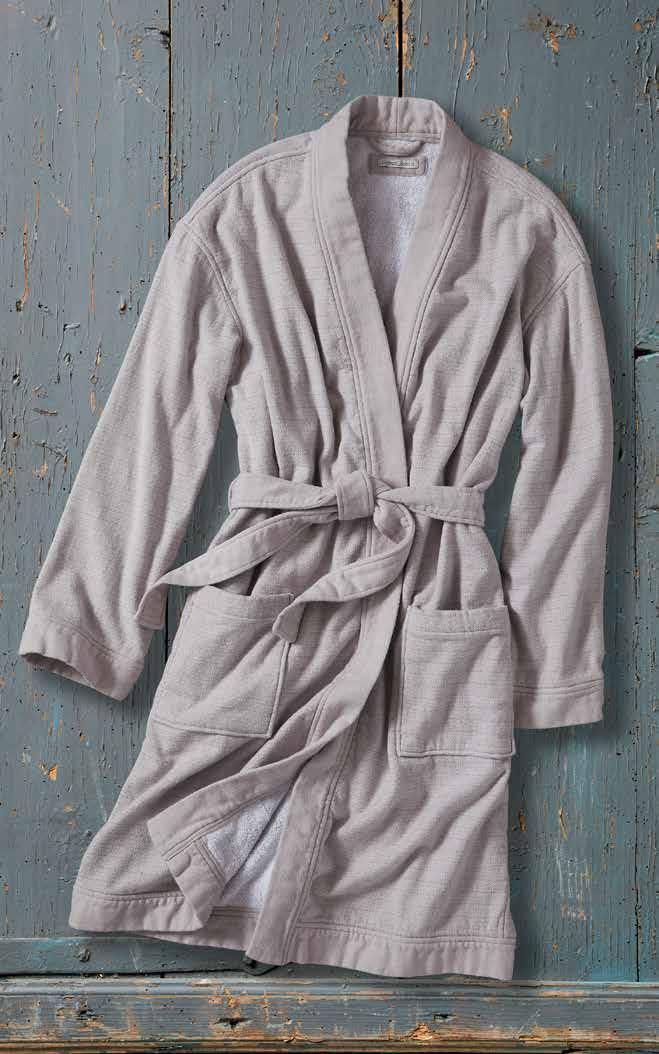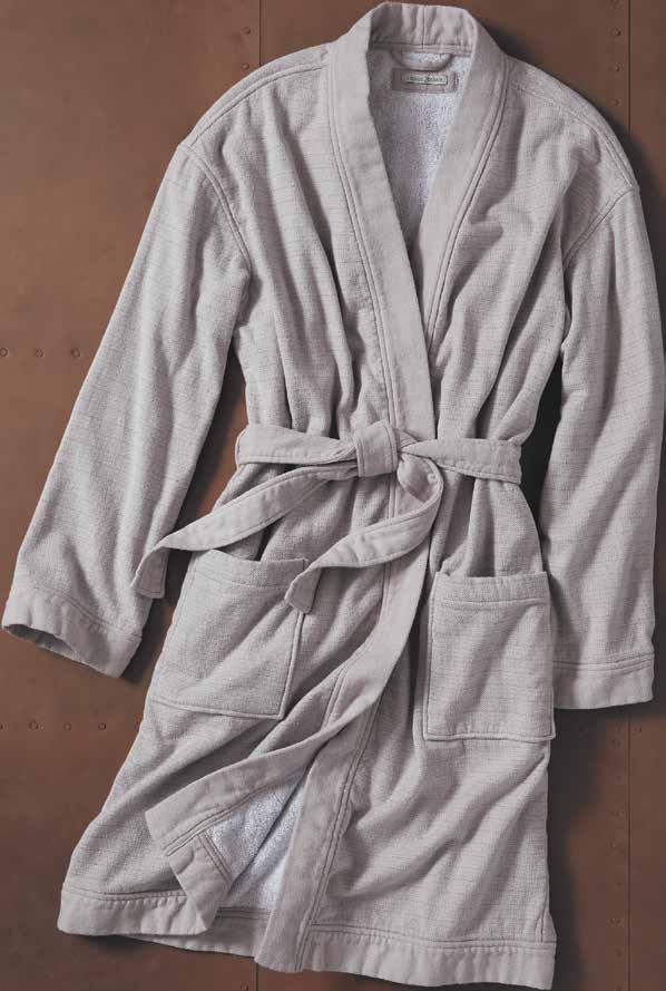 DESTINATION ROBE Wrap yourself up in this luxurious double-cloth bathrobe. Featuring a soft lining of absorbent terry, it’s a classic design with a substantial feel. Patch pockets. Detachable self-belt. 100% cotton. Imported in Stone. Women’s sizes: XS/S, M/L, XL. [388290] $8 9