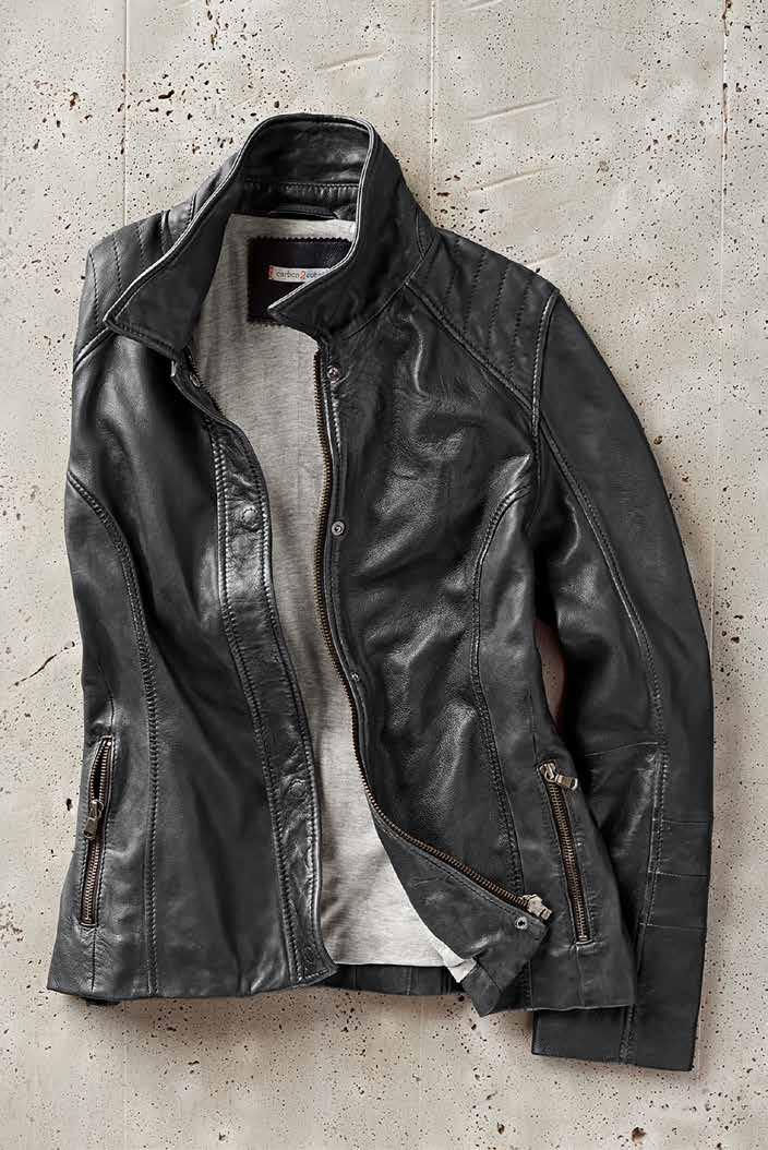Buttery-soft with a vintage-cool look and old-favorite feel, this is the leather jacket for all seasons. Lambskin outer, poly lining. Imported in Chamois. Women’s sizes: XS-XL. [318014] $3 89