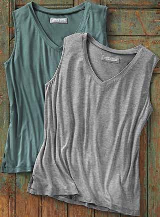 Silky-soft, this featherweight tank has an easy fit that slightly floats away from the body. Ideal for the warmest of weather or as an essential first layer, it has a flattering neckline and binding at the armholes for coverage. 95% viscose made from bamboo, 5% spandex. Imported in Gray or Sage.