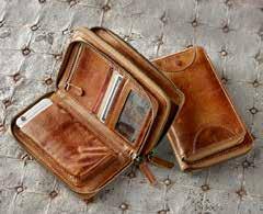 MISSION WALLET Have all your essentials at your fingertips with this wallet made of beautiful hand-finished leather. Imported in Cognac. 7.5" W x 4.5" H x 1.5" D [399005] $9 9