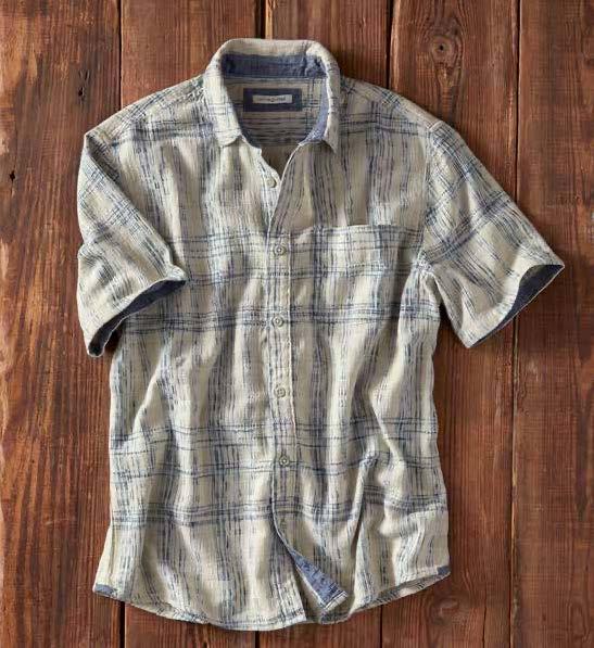 We don’t know what we love more, the rustic colors reminiscent of sunbaked tiles or the so , lightweight feel of this double cloth. With a plaid on the outside and a ne ticking stripe inside, it’s cool-looking throughout. Chambray trims the inner co ar and bu on placket binding. Single drop-in chest pocket. 100% co on. Imported in Multi. Men’s sizes: S-XXL. [ 133817 ] $89